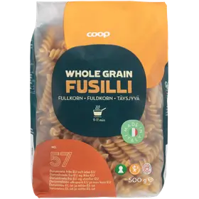 Coop Fusilli täysjyväpasta 500 g1,55 €3,10 €/kgVertailuhinta 3,10 €/kgPoista yksi kappale ostoskorista, Coop Fusilli täysjyväpasta 500 g,lopullinen määrä: 0 kappaletta0 kappaletta ostoskorissa0 kplLisää yksi kappale ostoskoriin, Coop Fusilli täysjyväpasta 500 g, lopullinen määrä: yksi kappaleLisää suosikkeihin, Coop Fusilli täysjyväpasta 500 g